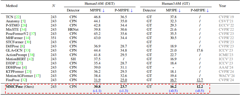 在Human3.6M數(shù)據(jù)集上MMCPose達(dá)到了最優(yōu)性能